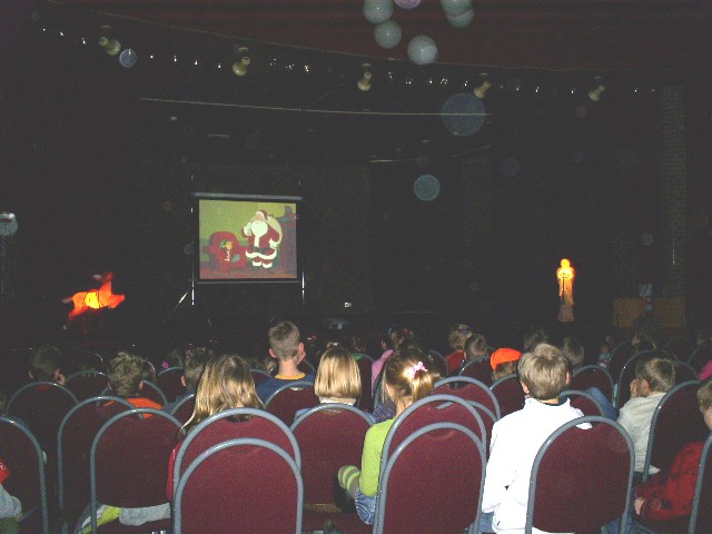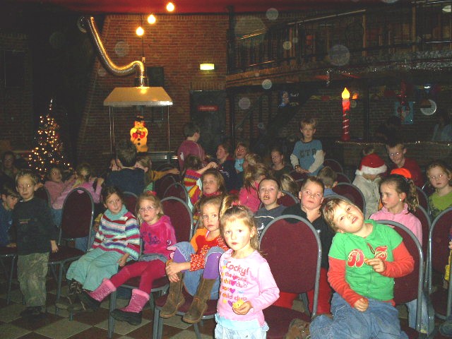 Ruim zestig kinderen kwamen woensdag 20 december jl. naar het dorpshuis om daar kerstfeest te vieren. De ronde zaal was omgetoverd tot een heuse bioscoop.
