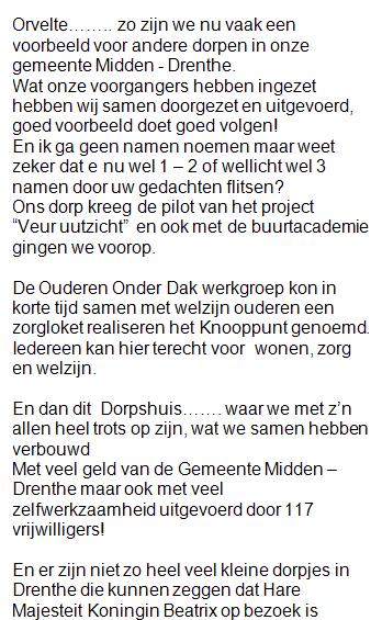 a.s. om 20.00 uur in het Dorpshuis aanwezig