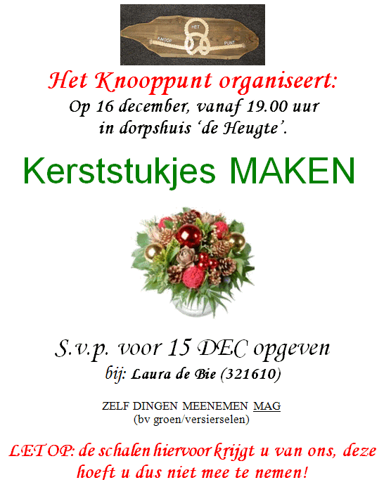 wel bij ons in dorpshuis ‘de Heugte’. U bent