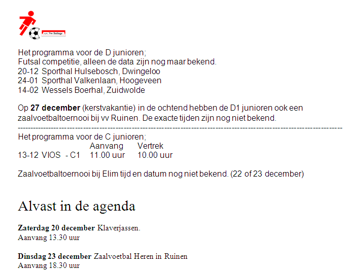 verslagen, eigen artikelen, uitslagen,