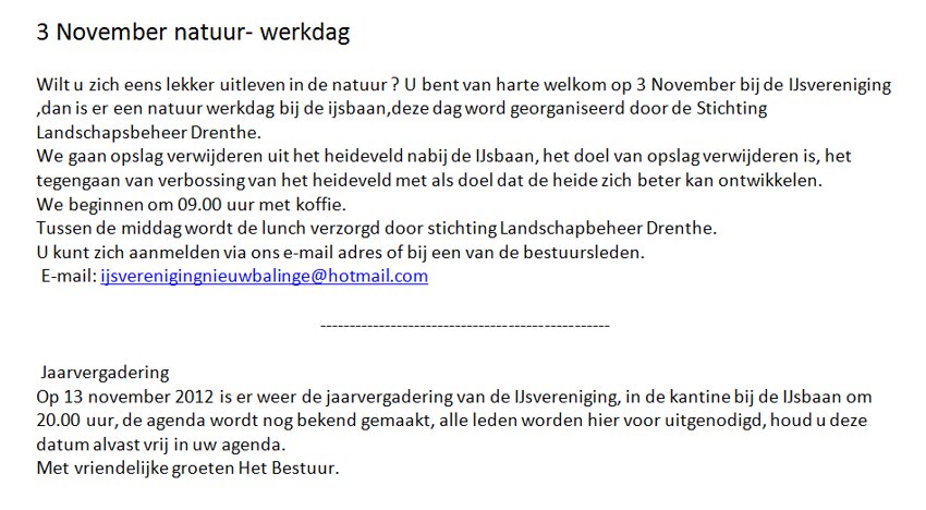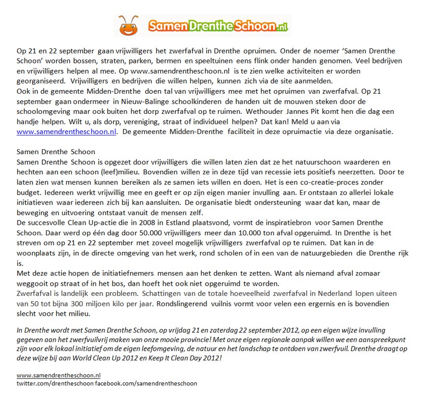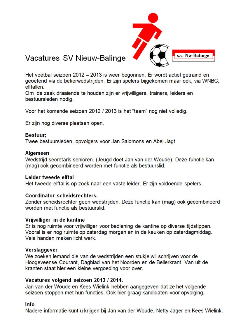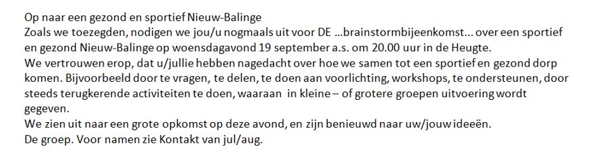 *Het plaatsen van kopij en van een kleine advertentie is gratis voor inwoners van Nw Balinge(particulier)