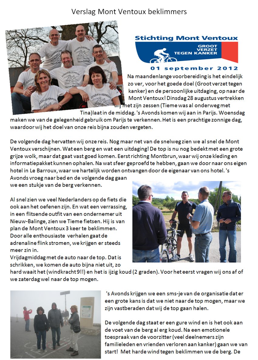 Verslag Mont Ventoux beklimmers