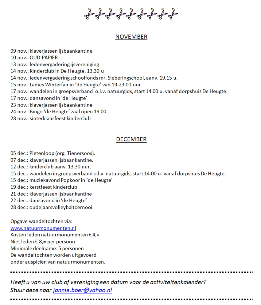 *Handgeschreven kopij en advertenties altijd inleveren vóór de laatste dag van de maand.