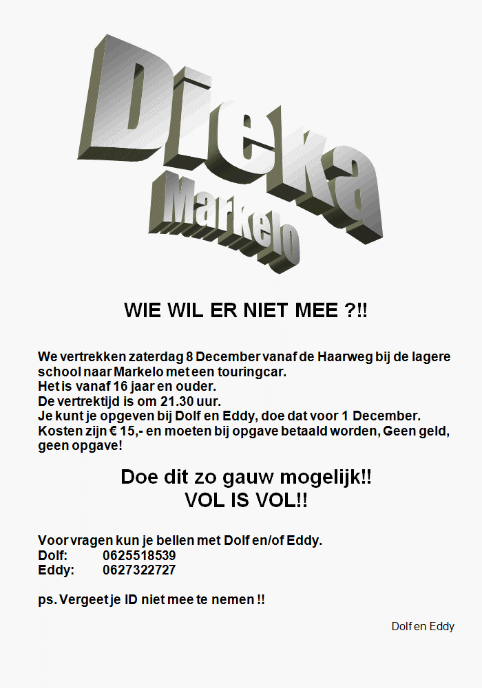 gezellig avondje uit wil naar Dieka in Markelo en bij