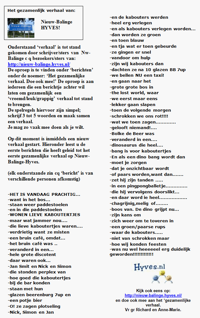 Nieuw-Balinge-Hyves door bezoekers van deze site. Meer