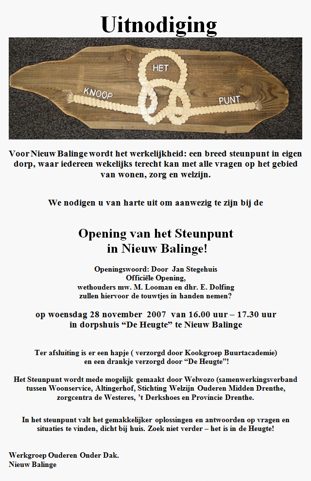 a.s. in het dorpshuis de Heugte in Nieuw Balinge. Het