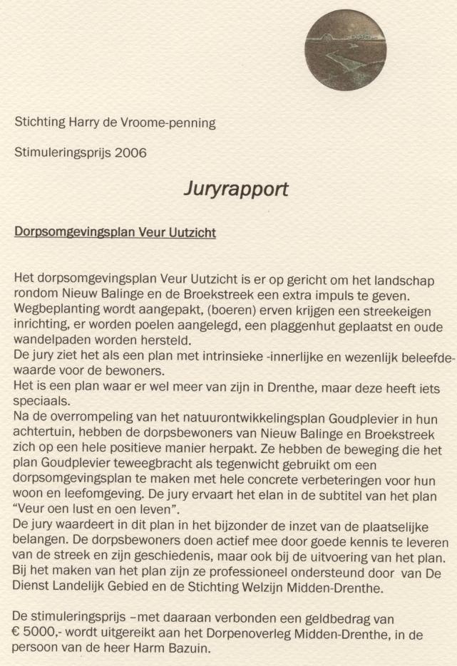 Noorden over de prijs die n.a.v. project Veur Uutzicht
