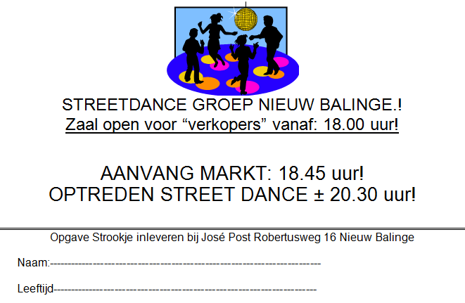 Speelgoedmarkt en optreden Streetdancegroep Nieuw Balinge |