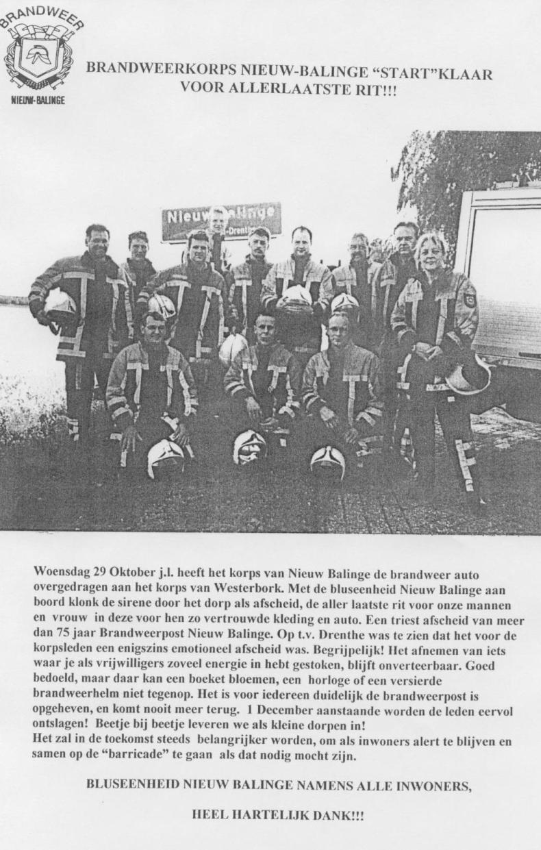 november 2003, Laatste tocht van het Brandweerkorps Nieuw Balinge